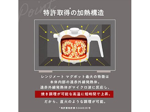 マイクロ波に反応して発熱する遠赤外線発熱体(※1)により短時間の高温調理が可能。