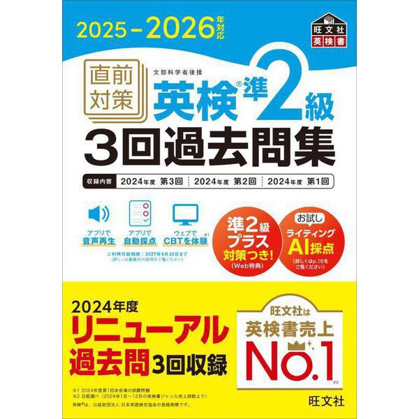 • 直前対策英検準2級3回過去問集〈2025-2026年対応〉(旺文社英検書) [単行本]